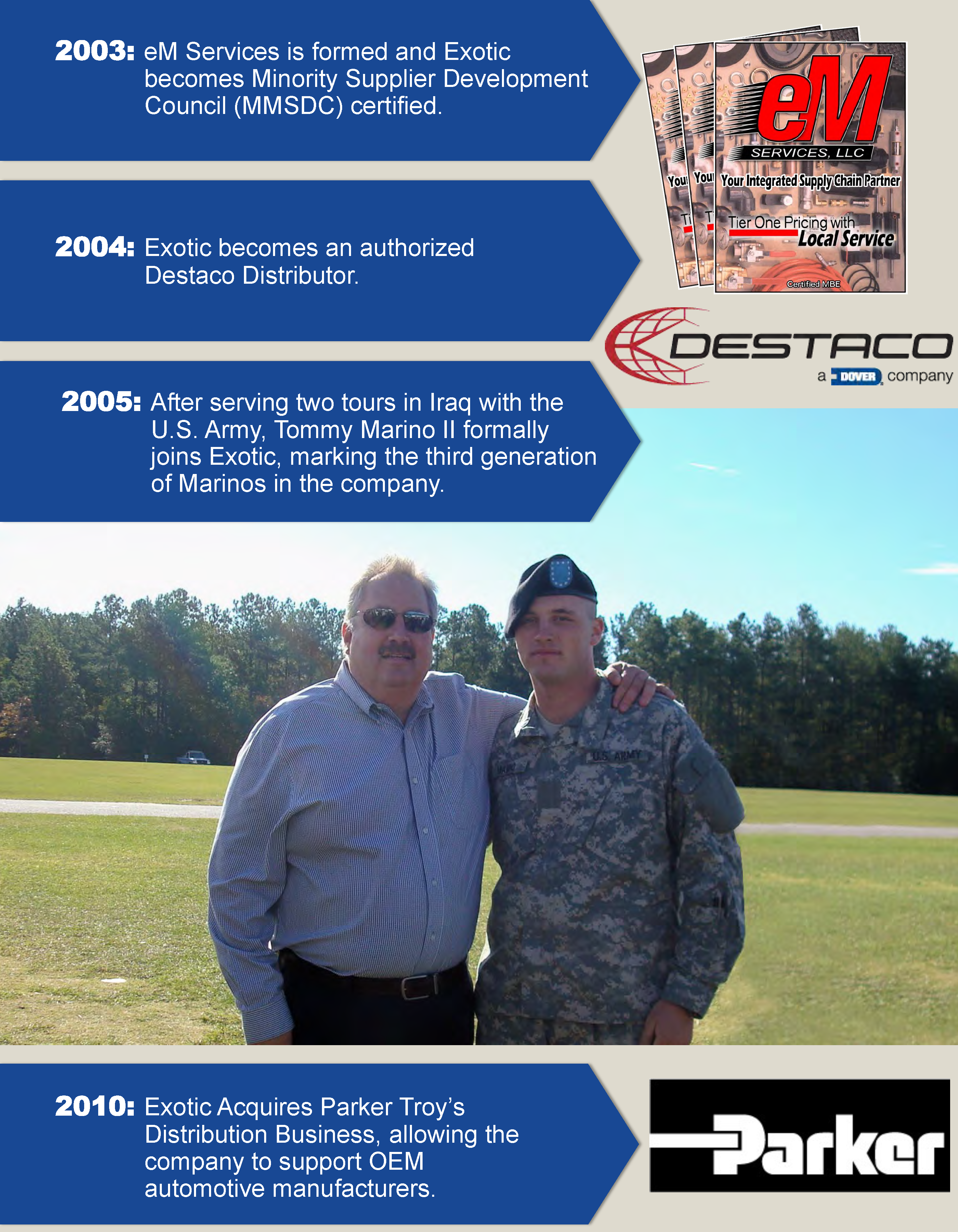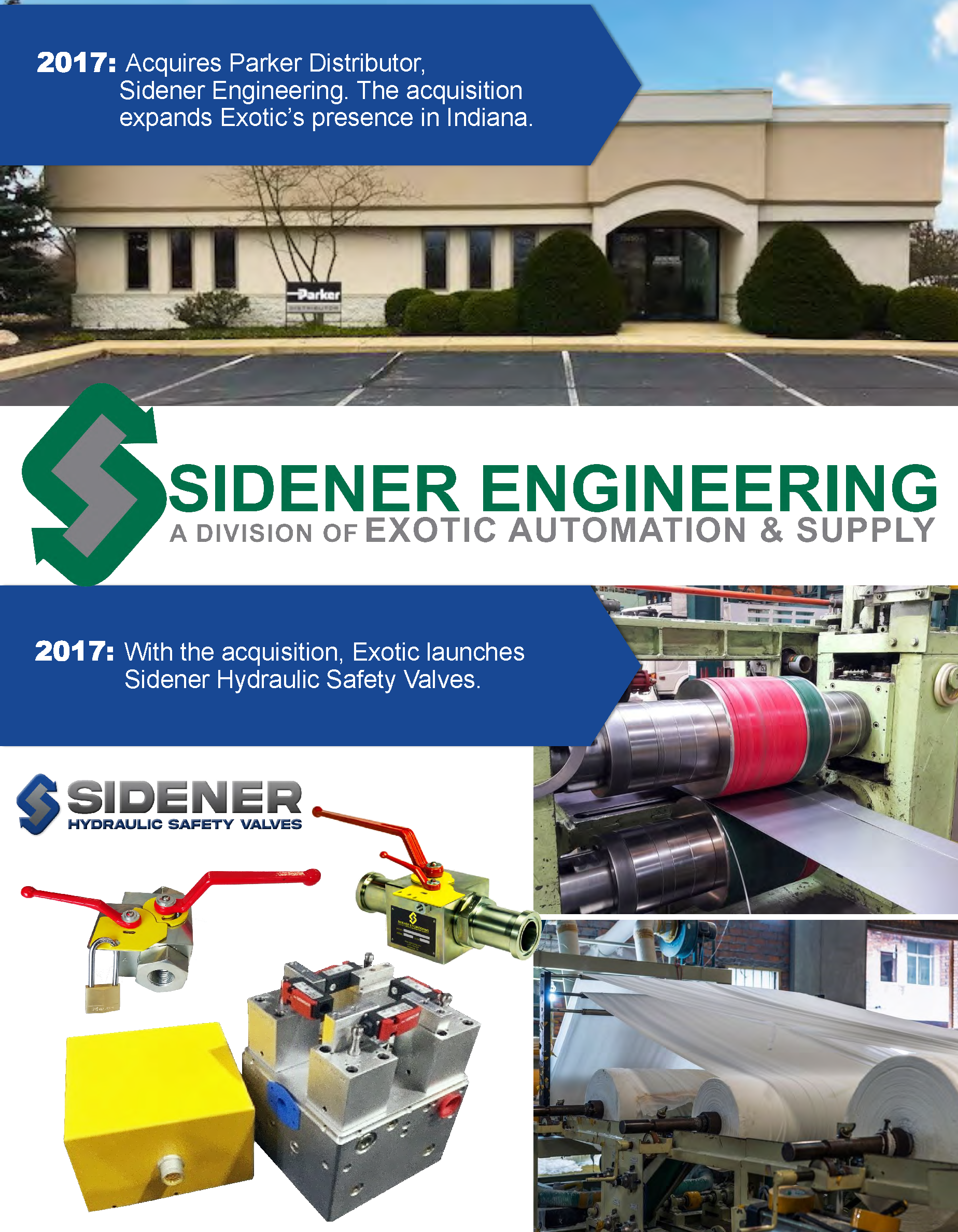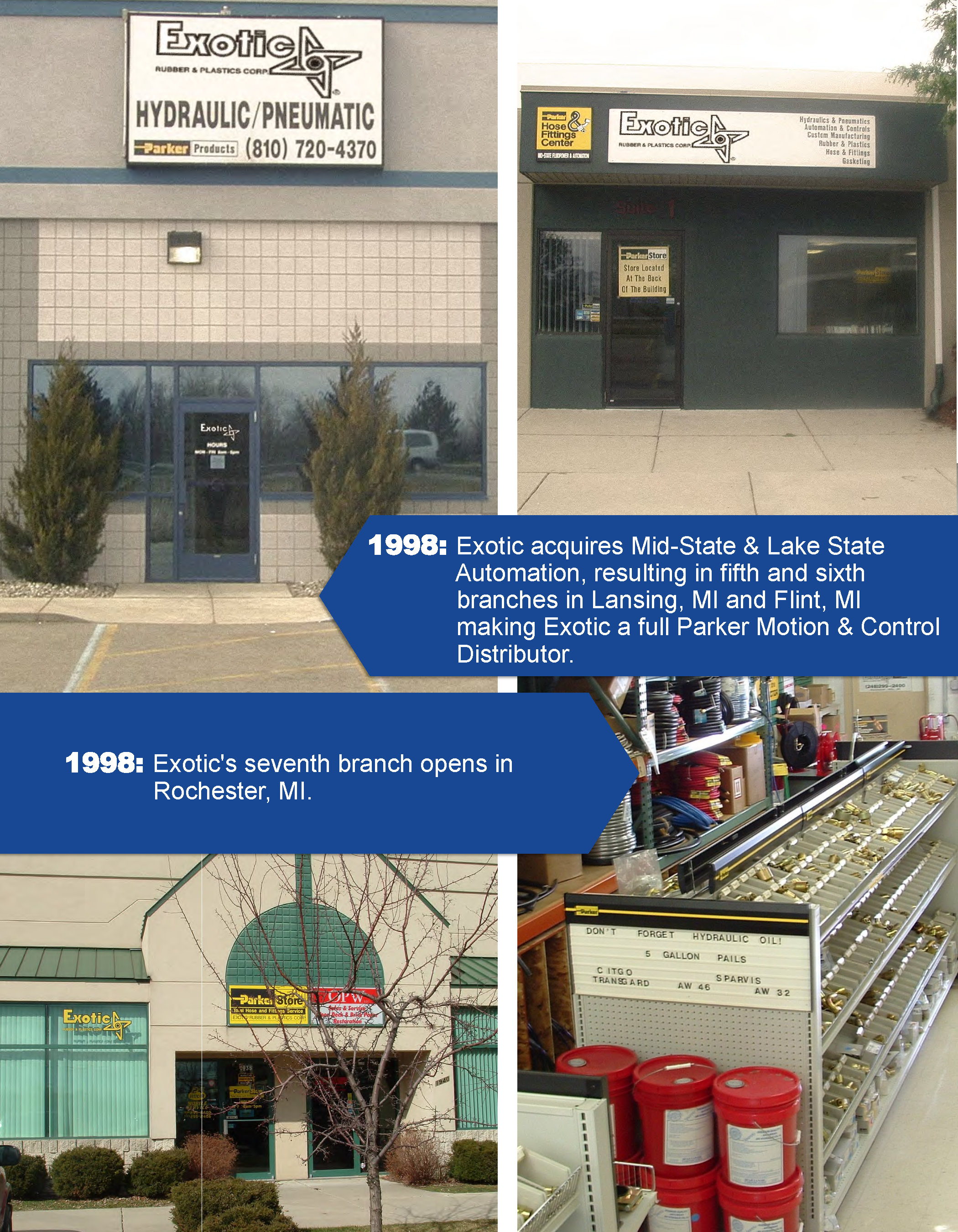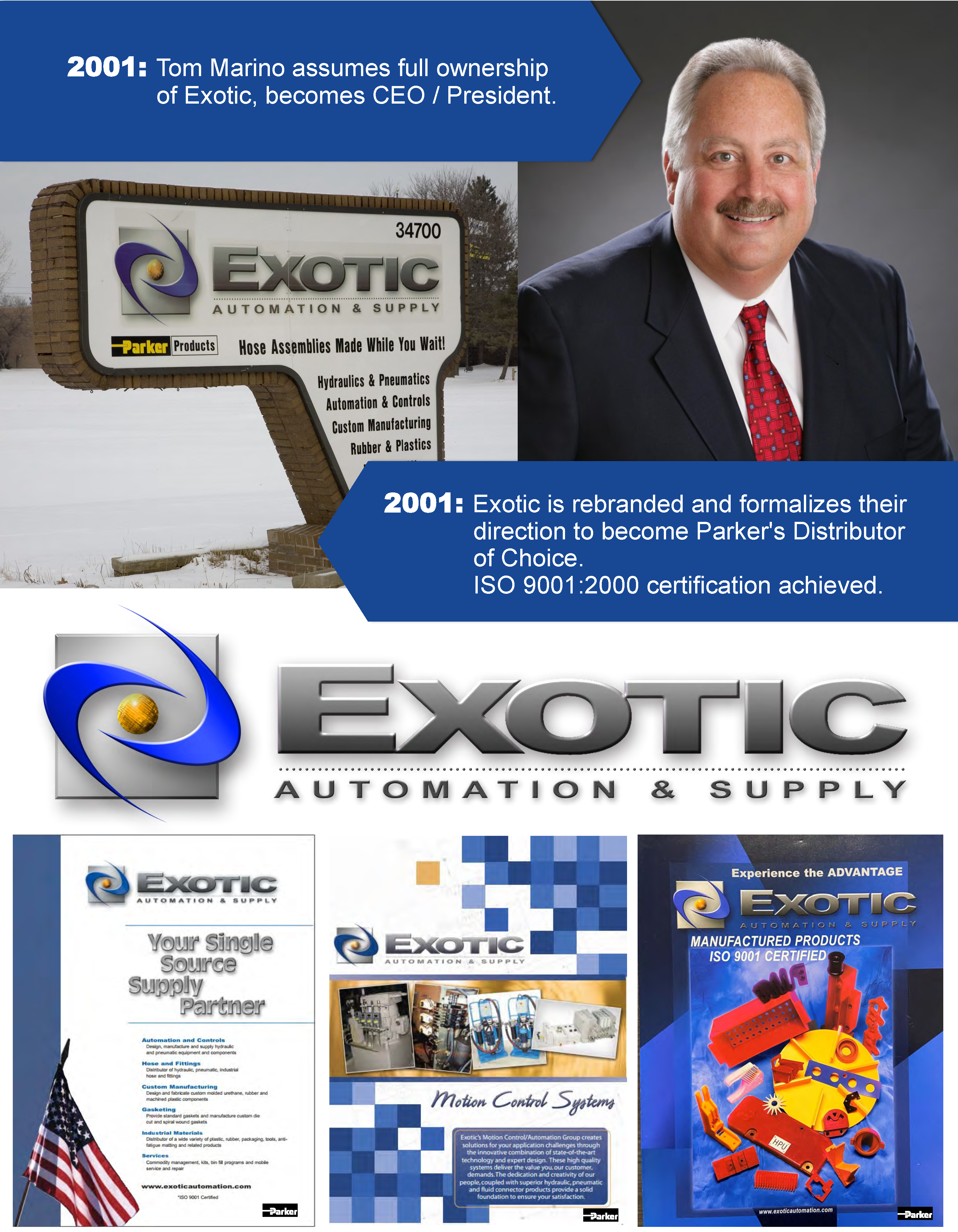 Founded in 1963 as Exotic Rubber and Plastics Corporation, our history demonstrates years of pioneering & revolutionizing new technologies. In 1972, we became a distributor of Parker Hannifin products. This commitment generated a dramatic increase in our involvement within the expanding field of automation and motion control. In 2001, we changed our name to Exotic Automation & Supply in order to fully reflect the scope of our product and service offerings. Today, Exotic’s QMS is ISO certified: we serve virtually every industrial sector where automation, motion control, material handling, gasket and sealing solutions are required.